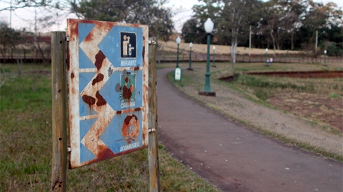 “Já que estão desassoreando o Parque do Lago, poderiam aproveitar para reformar as placas do local, que não sabem o que é uma mãozinha de tinta desde que foram instaladas, ainda no governo de Rubens Bueno”.