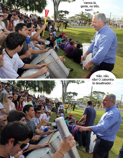 O clic é da cerimônia de abertura da fase final da Copa Coamo, disputada neste sábado, em Campo Mourão. Apesar de várias bandeiras pra serem hasteadas, não sobrou nenhuma para a prefeita Regina Dubay. Assim, a maior autoridade do município teve que se contentar em ficar só assistindo. E olha que Regina é cooperada, hein?...