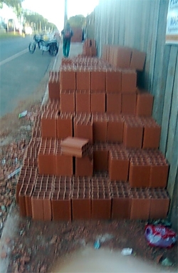“Calçada para o pedestre caminhar invadida por tijolos. Há mais de 60 dias os pedestres têm que passar pelo meio da avenida, entre carros, numa das avenidas mais perigosas de Campo Mourão, a John Kennedy, no Lar Paraná. Já foi reclamado na Ouvidoria da prefeitura, mas até agora nada”. José Batista