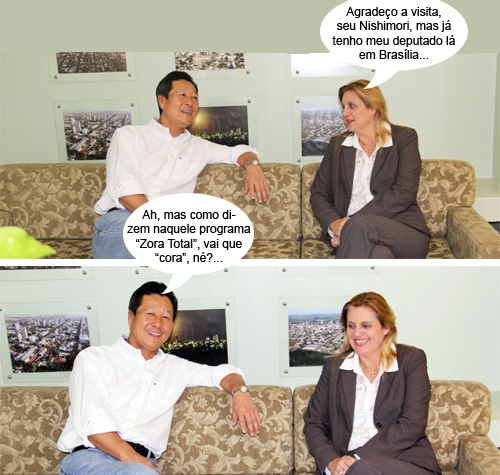 Os cliques são desta quarta-feira, quando a prefeita Regina Dubay recebeu a visita do deputado federal Luiz Nishimori. Na oportunidade, o parlamentar de Maringá prestou contas de seu trabalho na região e tratou sobre projetos locais. Ah, como diria o ex-vereador Izael Skowronski, “o que abunda não prejudica”...
