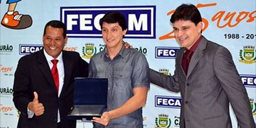 O historiador Raoni Marques de Assis foi um dos homenageados pelo Sport Club Campo Mourão, na quarta-feira. Olha ele aí, recebendo a placa das mãos do presidente Fábio Gaspar Mello e do tesoureiro Marco Antonio Mattos. Por que a homenagem? Porque Raoni está concluindo um livro sobre a história do futebol profissional em Campo Mourão, onde o Sport aparece em destaque, além da Mourãoense e da Adap. O lançamento está previsto para setembro.