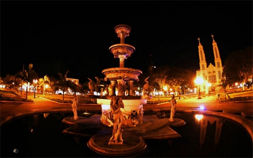 "Vista noturna do chafariz da praça Getúlio Vargas, em Campo Mourão". Irineu Ricardo