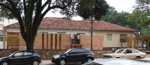 Jardim mostra até foto de operários no local.