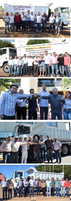 As fotos ao lado mostram entregas de caminhões e máquinas em Boa Esperança, Janiópolis, Juranda, Moreira Sales e Ubiratã.