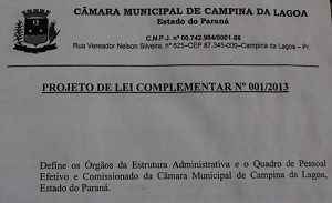 A Câmara de Campina da Lagoa vota nesta quinta-feira, em segundo turno, projeto que cria cargos e aumenta salários de seus comissionados.