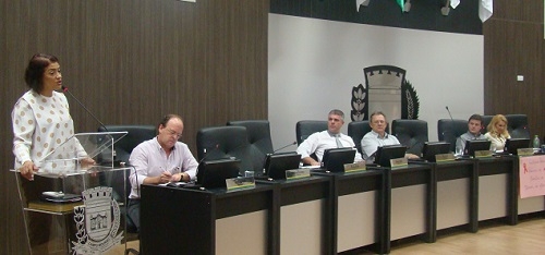 A presidente do Sindicato dos Servidores, Silvane Botega, discursou na tribuna livre da Câmara nesta terça-feira.