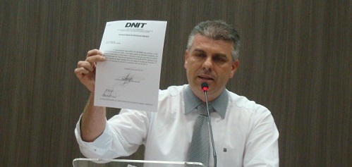 O vereador Edílson Martins usou a tribuna a Câmara, nesta terça-feira, para mostrar cópia da ordem de serviço do Dnit que autoriza o início das obras da Estrada Boiadeira e da BR-158 (Campo Mourão - Roncador). Disse que estava fazendo igual a Boca Santa, "matando a cobra e mostrando a bicha morta".