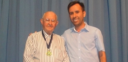 A foto é da jornalista Cidinha Colletty e mostra o professor Assabido Rhoden, todo faceiro, com a Comenda Vida e Liberdade, que recebeu nesta terça-feira da Academia Mourãoense de Letras. Ele é um dos imortais da AML e recebeu a homeanagem do presidente Jair Elias dos Santos Jr. No mesmo evento, Assabido lançou o livro "As exigências do Ministério de Cristo". Tudo dentro da Bienal do Livro de Campo Mourão, que segue até sábado e tem lançamento de livros todos os dias, entre outras atrações.