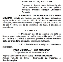 A secretária de Saúde Patrícia Chandoha prorrogou até o fim do mês o pedido de licença para tratamento de saúde.