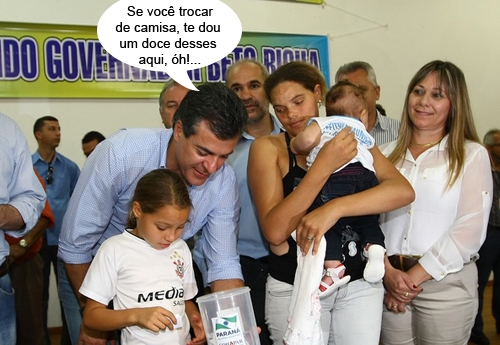 O clic é desta sexta-feira, em Fênix, durante a visita do governador Beto Richa. O prefeito Edwaldo Chefinho está logo atrás, enquanto Richa cochicha no ouvido de uma menina com a camisa do Corinthians. Oficialmente, o governador, que é londrinense de nascimento, torce para o Londrina. Ô sina...